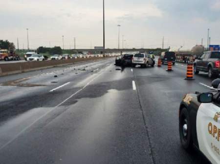 Ontario Provincial Police Sgt. Kerry Schmidt said a man was driving a black vehicle when he lost control for unknown reasons and struck the guardrail before coming to a stop in a live lane.