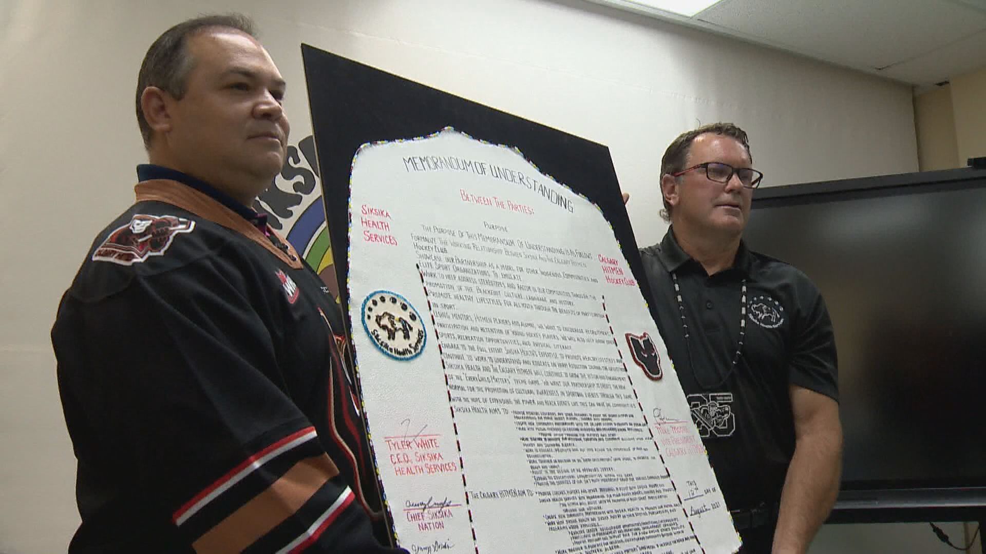 The Siksika First Nation and Calgary Hitmen are hoping to inspire other sports organizations and Indigenous groups to partner together with a memorandum of understanding signed Thursday.