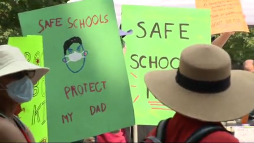 With students set to return to classrooms next month, teachers held a rally on Saturday to renew calls for stronger COVID-19 safety measures in B.C. schools.