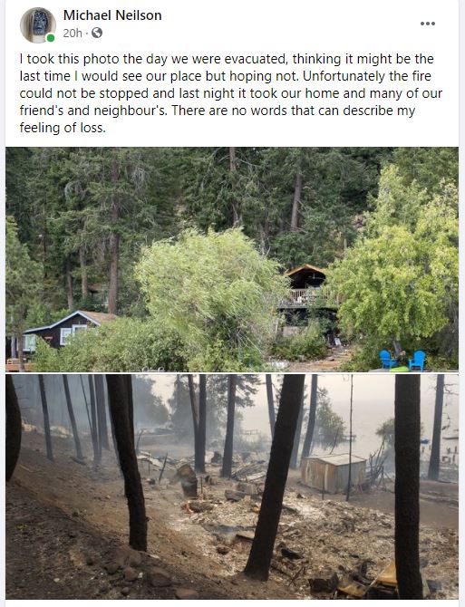 Photos posted to social media are showing some of the devastation left behind by wildfires burning in B.C.