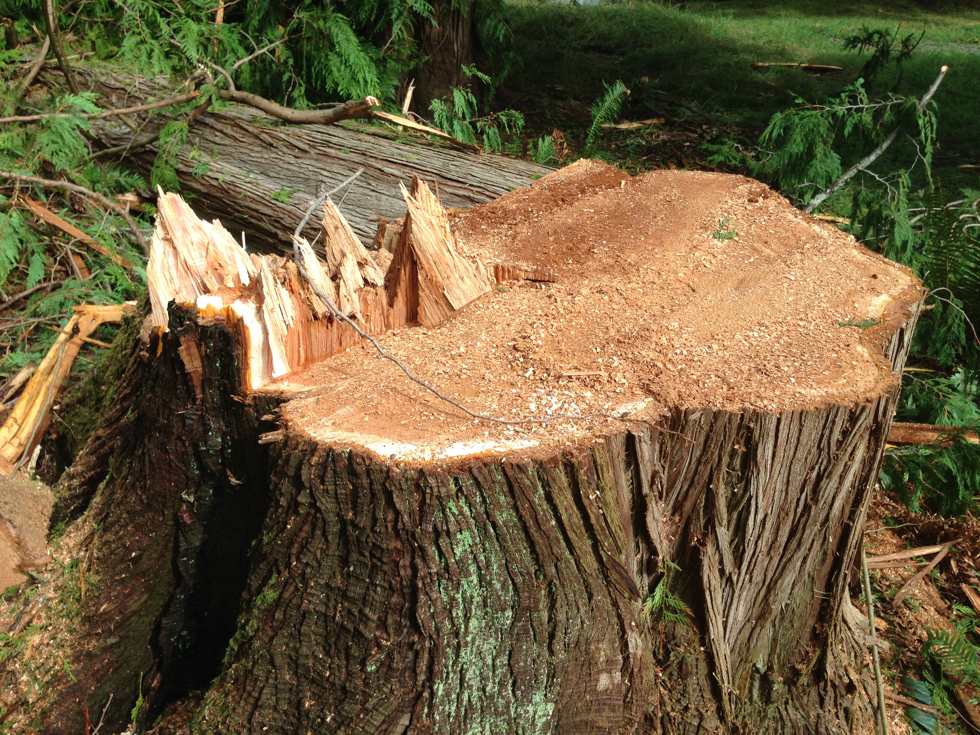 Board Chair Rich Overgaard says staff members had to move to one of the large buildings after a tree behind their cabin was completely split in half by a lightning strike.
