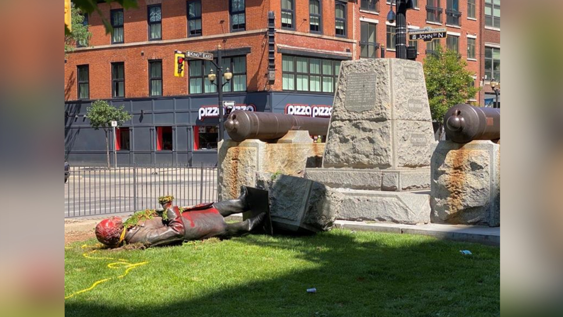 A 56-year-old Toronto man has been charged in connection with toppling of the Sir John A. Macdonald statue at Gore Park in downtown Hamilton.