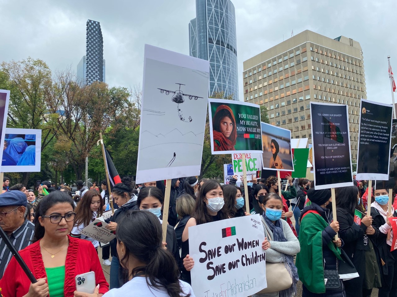 Cooler temperatures and rain were small inconveniences for the hundreds of Calgarians protesting the international response to the Taliban retaking Afghanistan after the planned withdrawal of U.S. and allied forces.