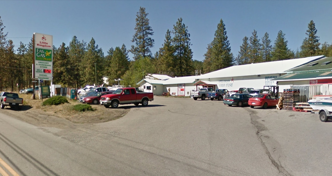 What’s left of Little Kingdom grocery store and gas bar on the northwest side of Okanagan Lake remains behind a roadblock.