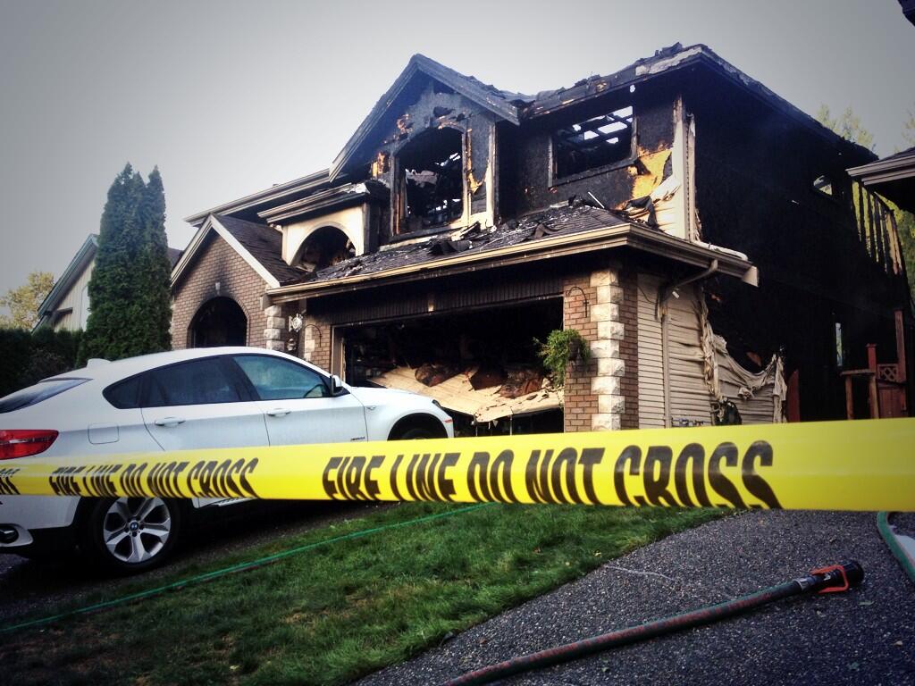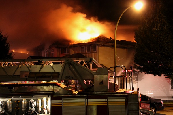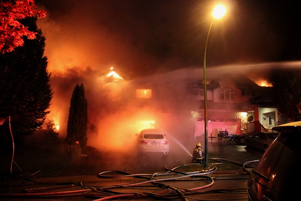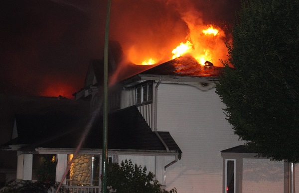 A fire in Maple Ridge Friday night has destroyed one home and left others with major damage.