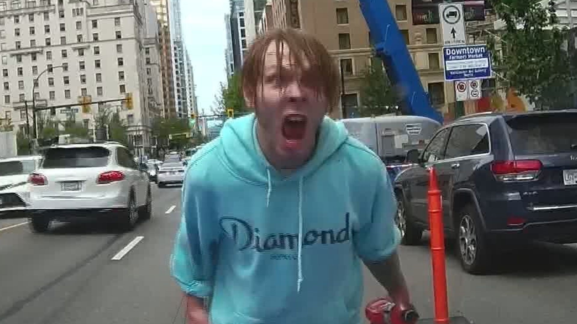 “The suspect stood in front of the victim’s car, gestured aggressively, then began screaming at the driver,” Sgt. Steve Addison with the VPD said in a release. “The driver managed to manoeuver away. That’s when the suspect allegedly hurled a bottle through the driver’s window and struck him in the head.”