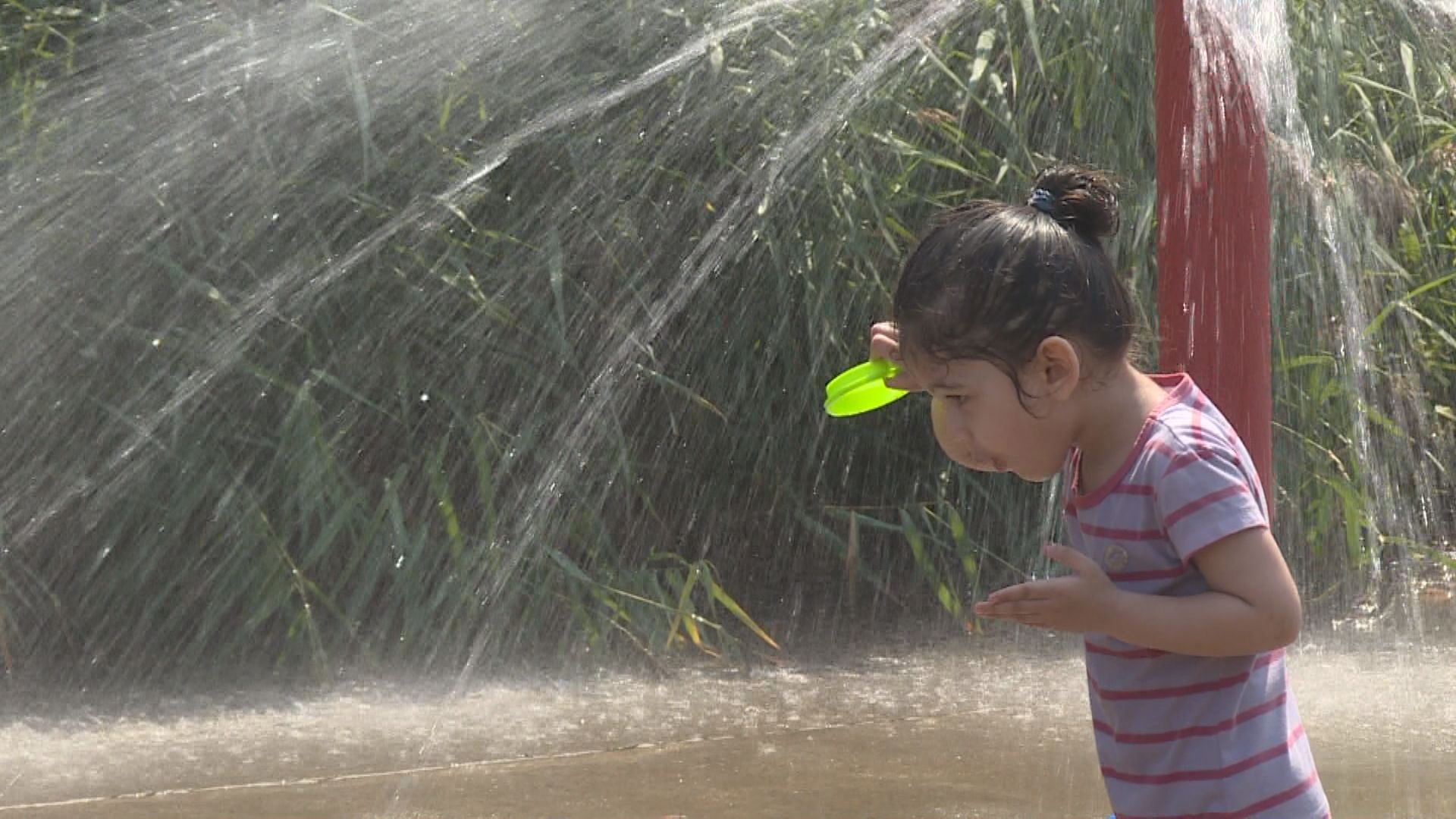 “Oh, it’s brutal,” said Ali Farasat, who had come to the Kent Park splash pad with his son. “Thank God you have a park like this.”