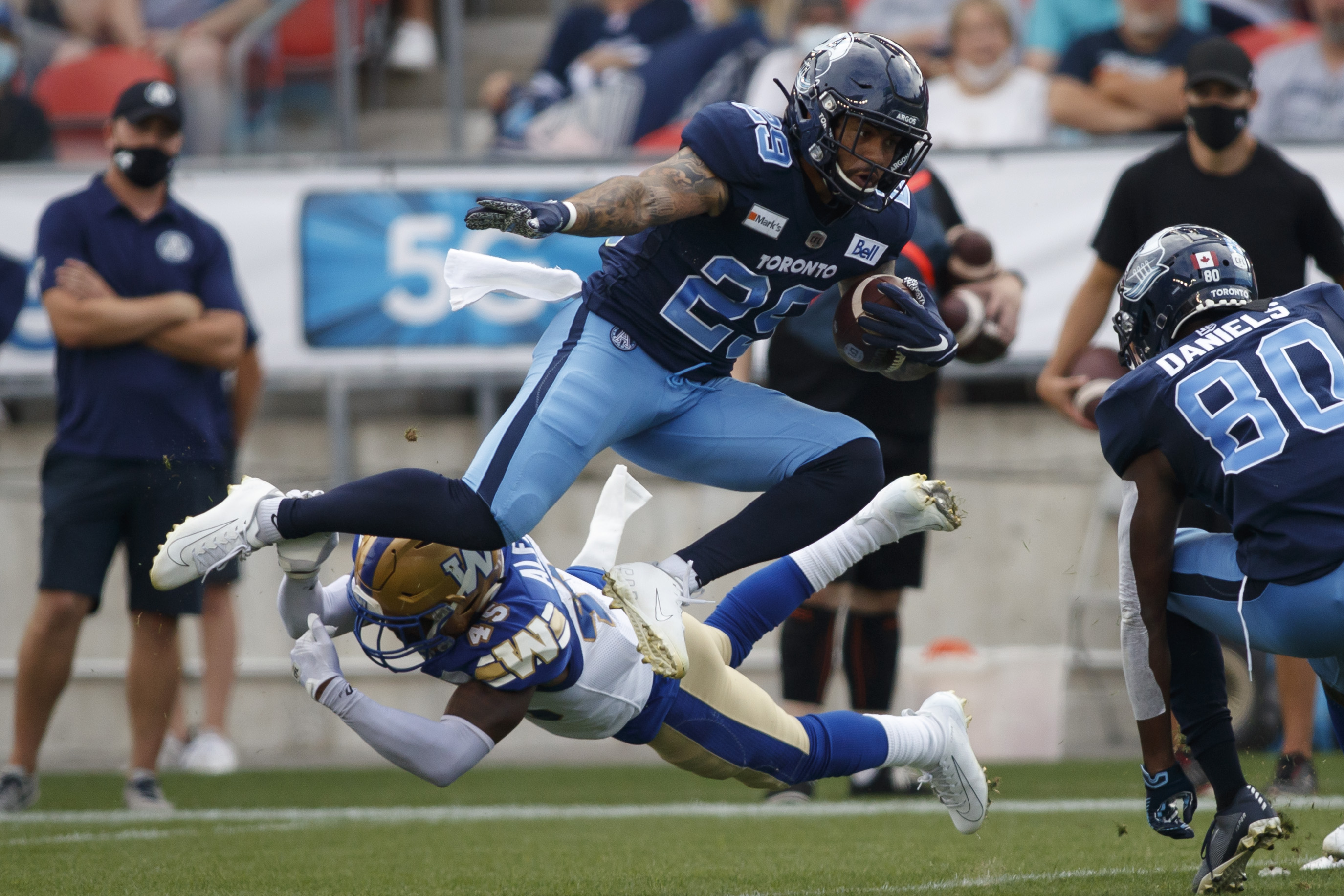 On the other sideline, Toronto’s quarterback Nick Arbuckle chucked the ball for 310 yards and a touchdown.