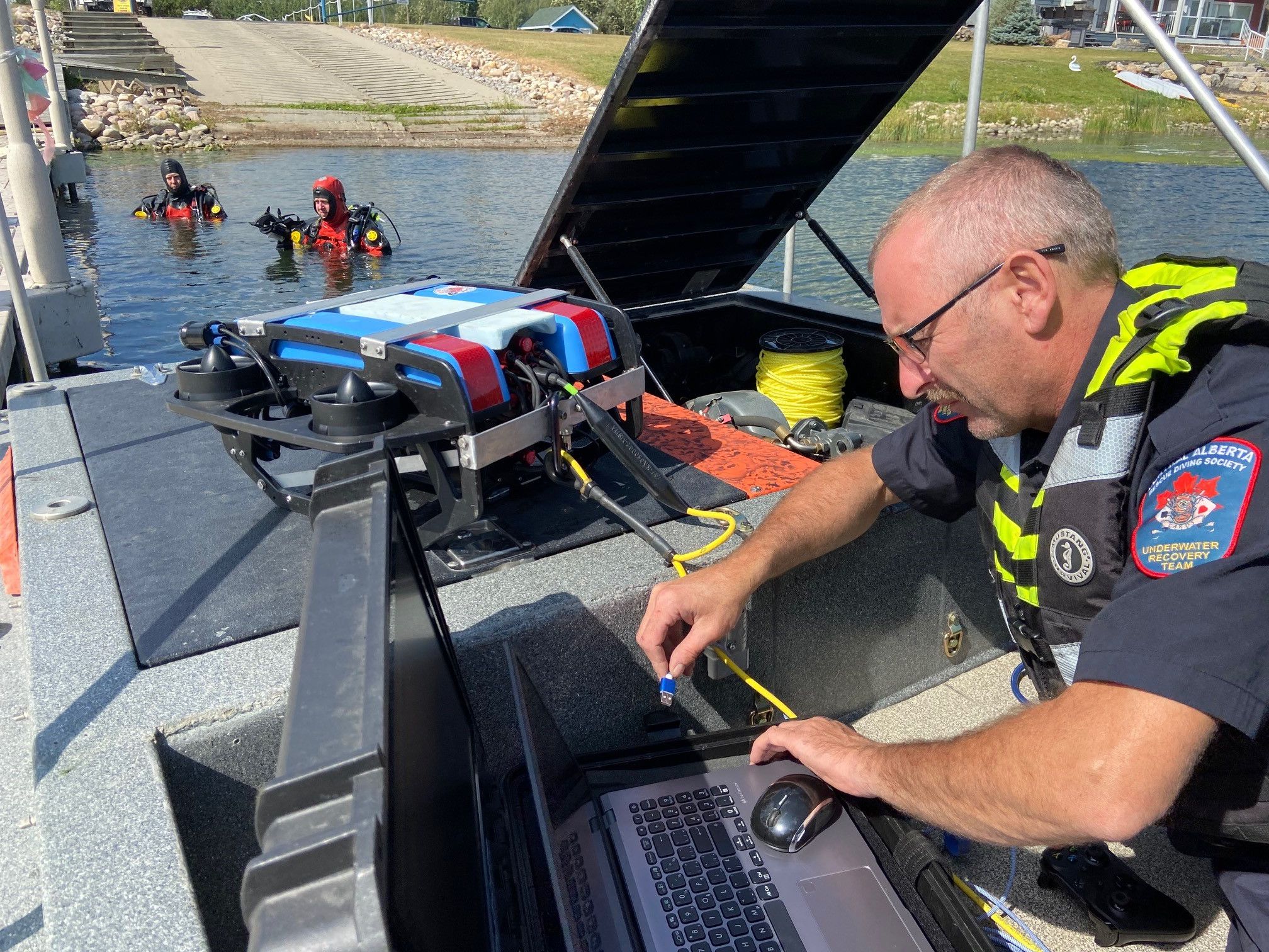 Once the sonar locates a contact, it is then marked and the team brings in an unoccupied underwater robot to view the area before divers are sent in.