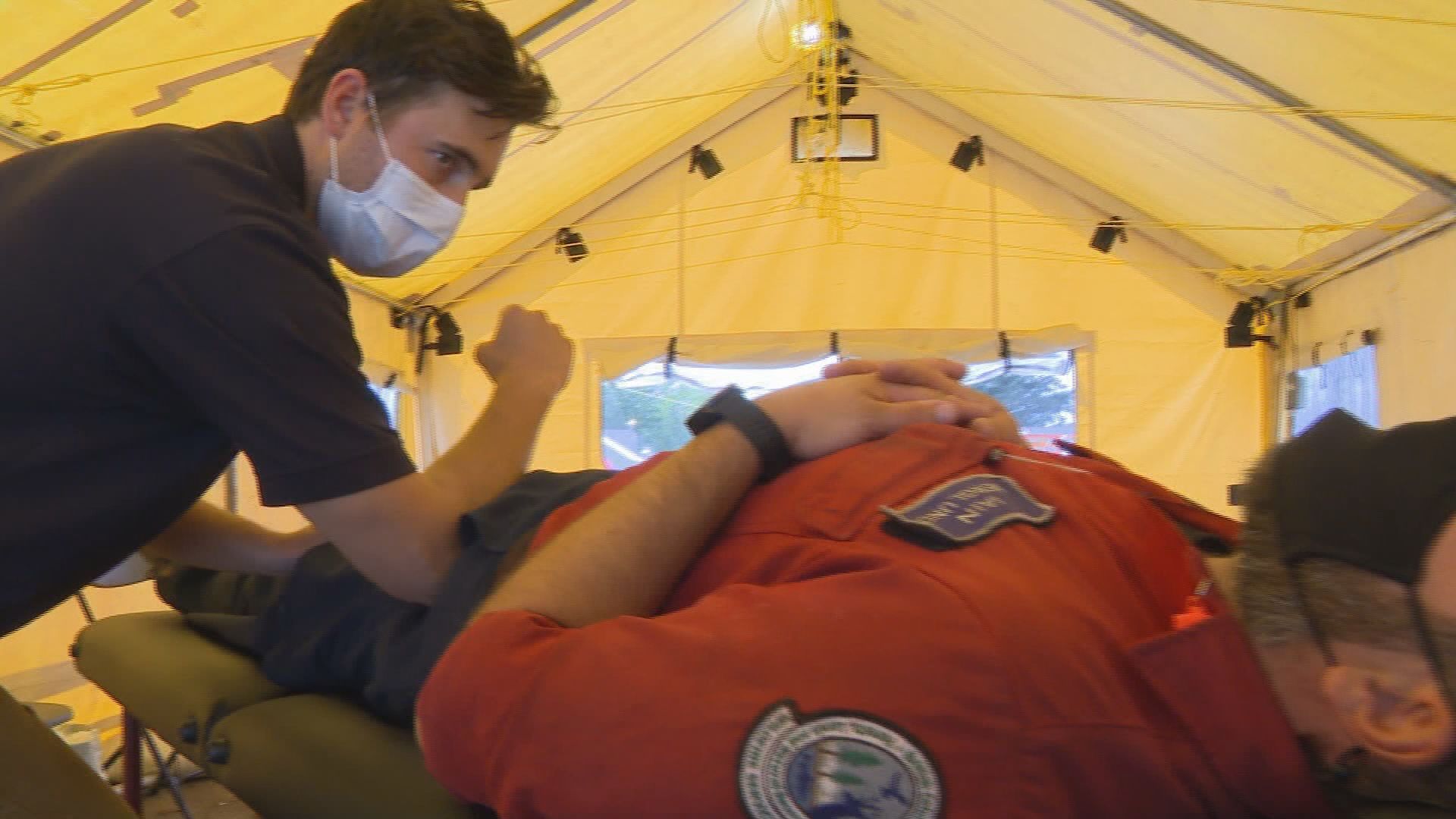 A small group of chiropractors and massage therapists, along with a high school student, have also volunteered their services at the camp.