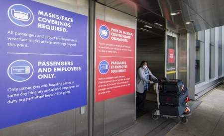 At Pearson, all passengers and employees are required to wear a mask, except when eating or drinking.
