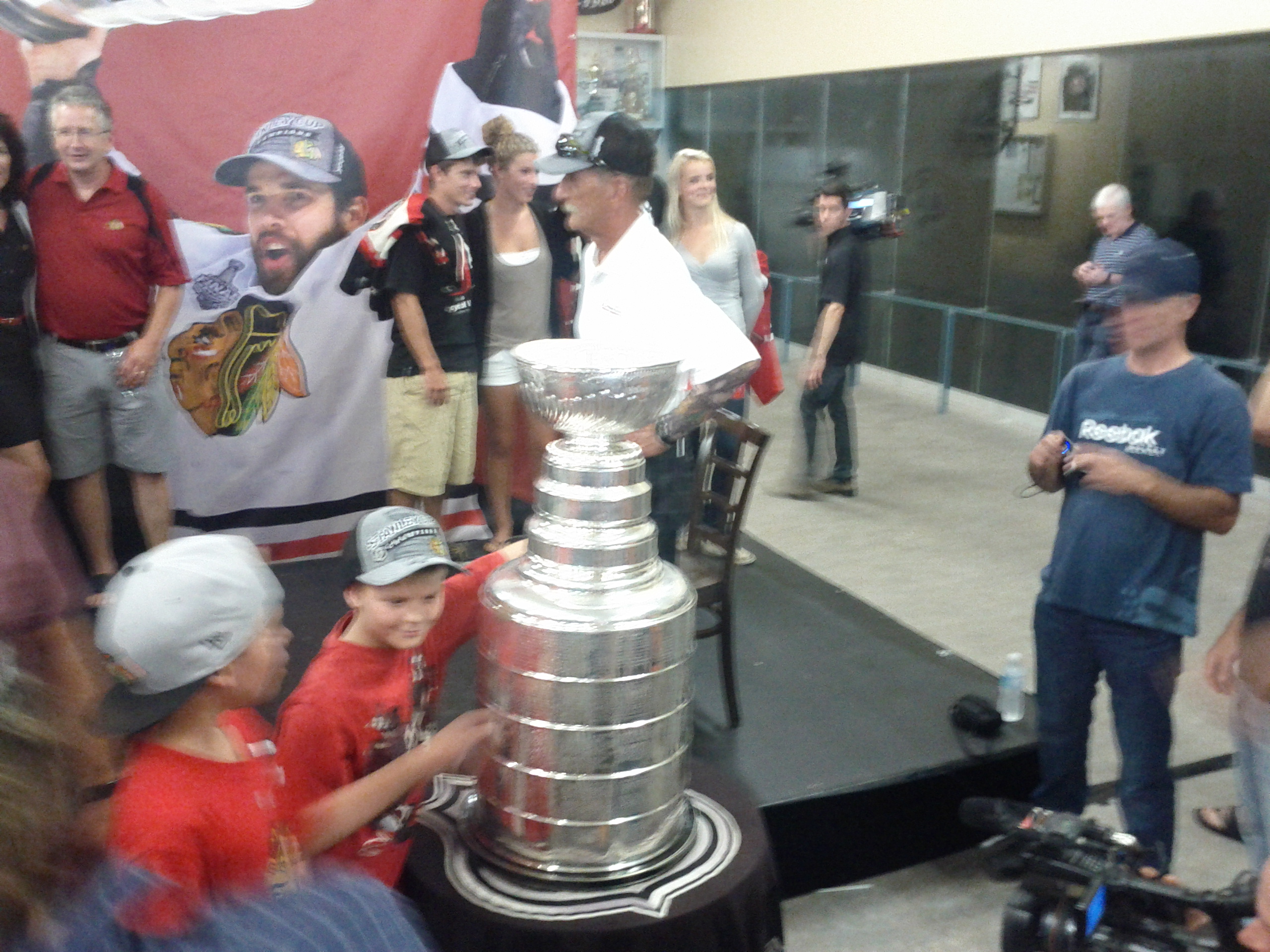 CHÂTEAUGUAY, Que. – More than 1,000 hockey fans braved a damp Labour Day to catch a glimpse of Chicago Blackhawks netminder Corey Crawford and the Stanley Cup that his team took from the Boston Bruins this season.