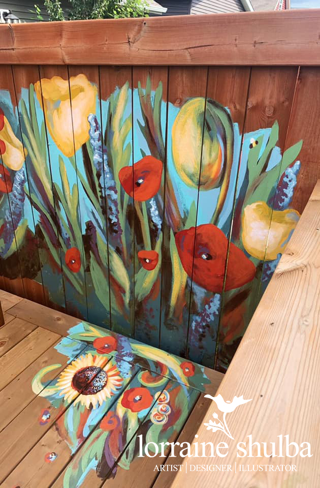 Local artist, illustrator and author Lorraine Shulba has been using her talents by turning decks, sheds and fences into outdoor masterpieces. The creative concept was to bring some light into the community after such a dark time.
