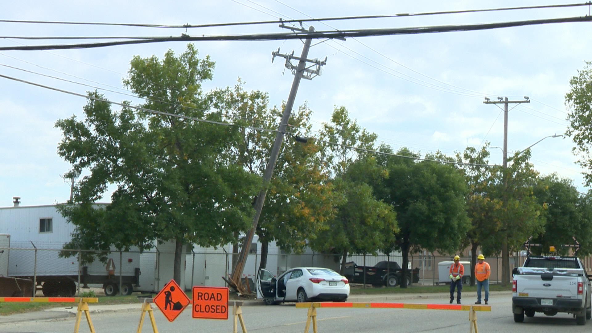 A portion of 105th Street is expected to be closed for a few hours on Saturday after a car collided with a power pole, according to Saskatoon police.