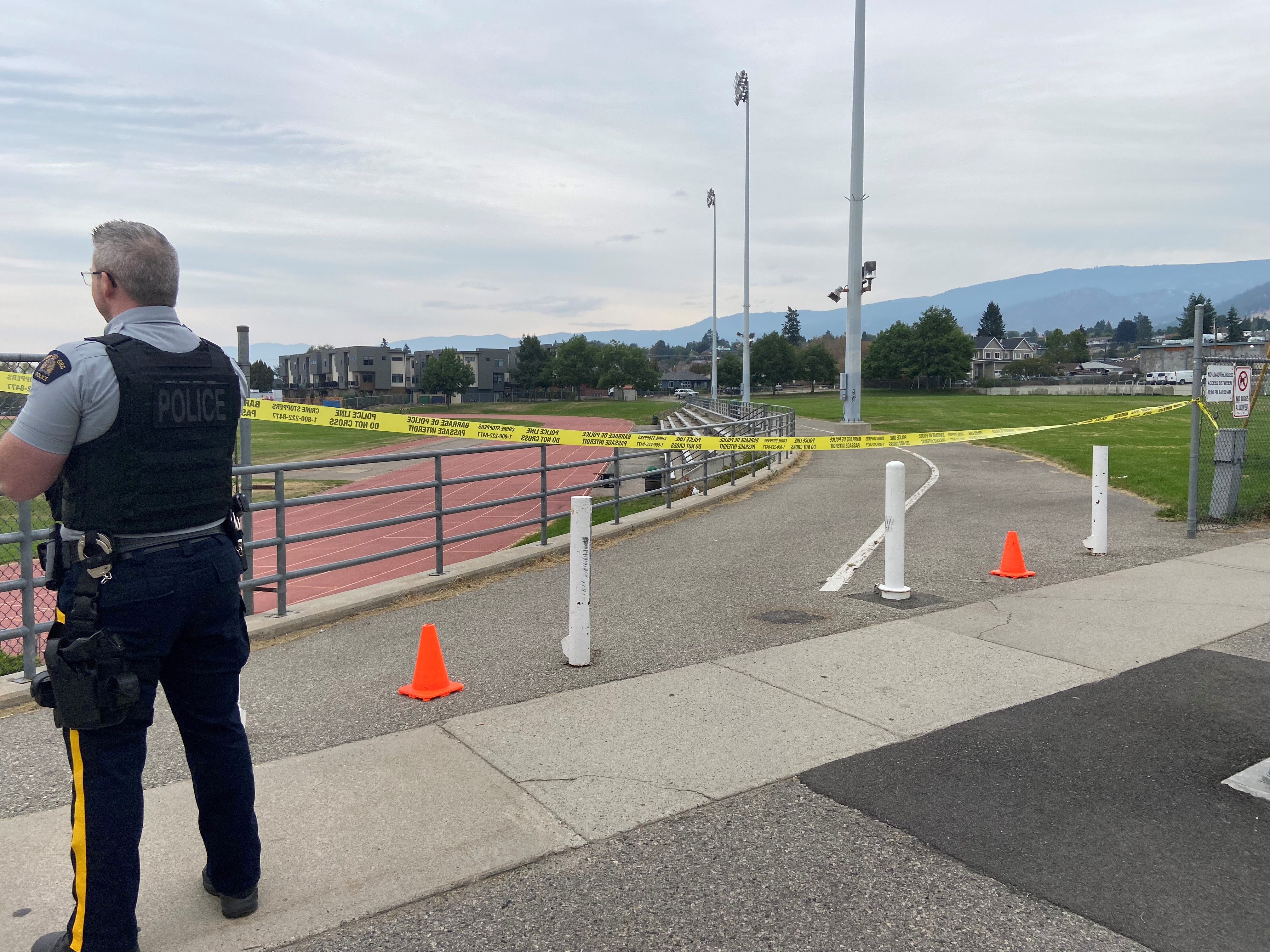 All entrances to the track and field area near Penticton Secondary School were blocked off by police tape and a police dog could be seen sniffing for evidence on Sunday morning.