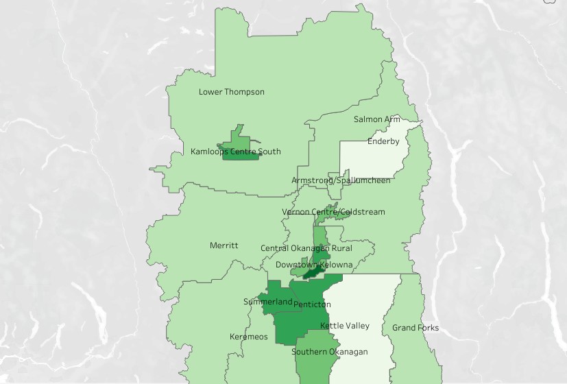 In the South Okanagan, Penticton is reporting 73 per cent vaccine coverage while Summerland has 71 per cent.