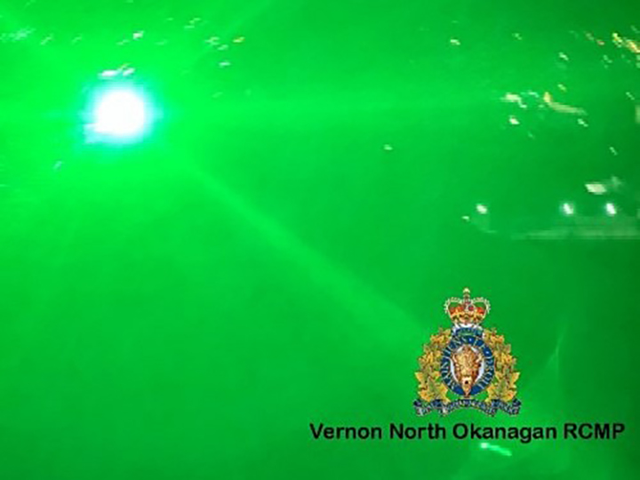Police say a NAV Canada representative contacted them around 11:15, telling RCMP they were receiving reports that someone was pointing a green laser into the cockpits of several commercial aircraft flying over Vernon.