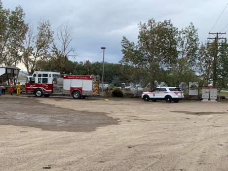 Saskatoon police officers and firefighters are on the scene of a large fire at an acreage on 11th Street West and Highway 7.