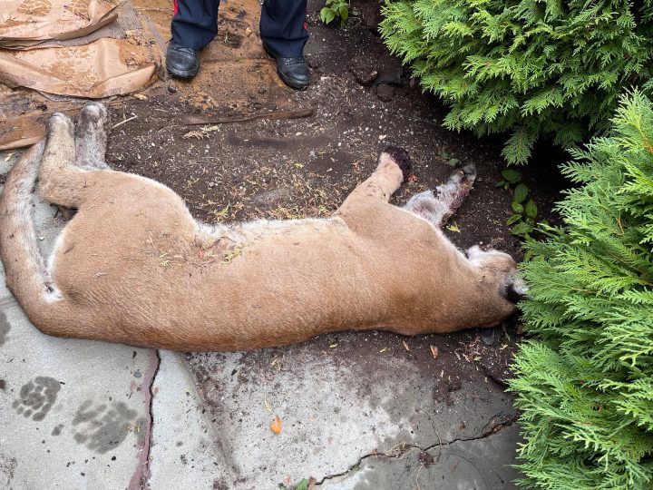 A fish and wildlife officer arrived at the scene after the cougar was euthanized and took the animal’s body for further examination.