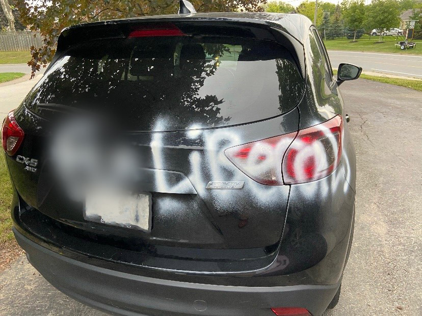 Chris Bittle, who is running for re-election in his St. Catharines riding, said on Twitter that he woke up this morning to find his car spray-painted with the message “FU LIBERALS.”