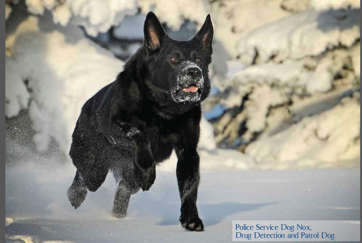 His dog, Nox, a general patrol dog who is also trained in drug detection, is the feature image for December 2014.