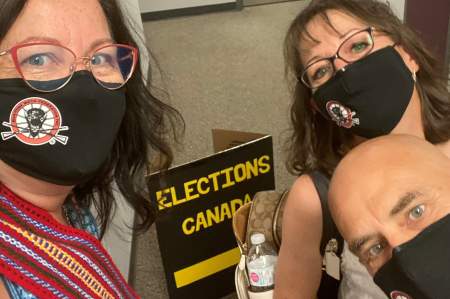 Sharon Parenteau (left) and her colleagues at the Manitoba Métis Federation cast their advance ballots on Fri. Sept. 10, 2021 in Winnipeg. Courtesy: Sharon Parenteau
