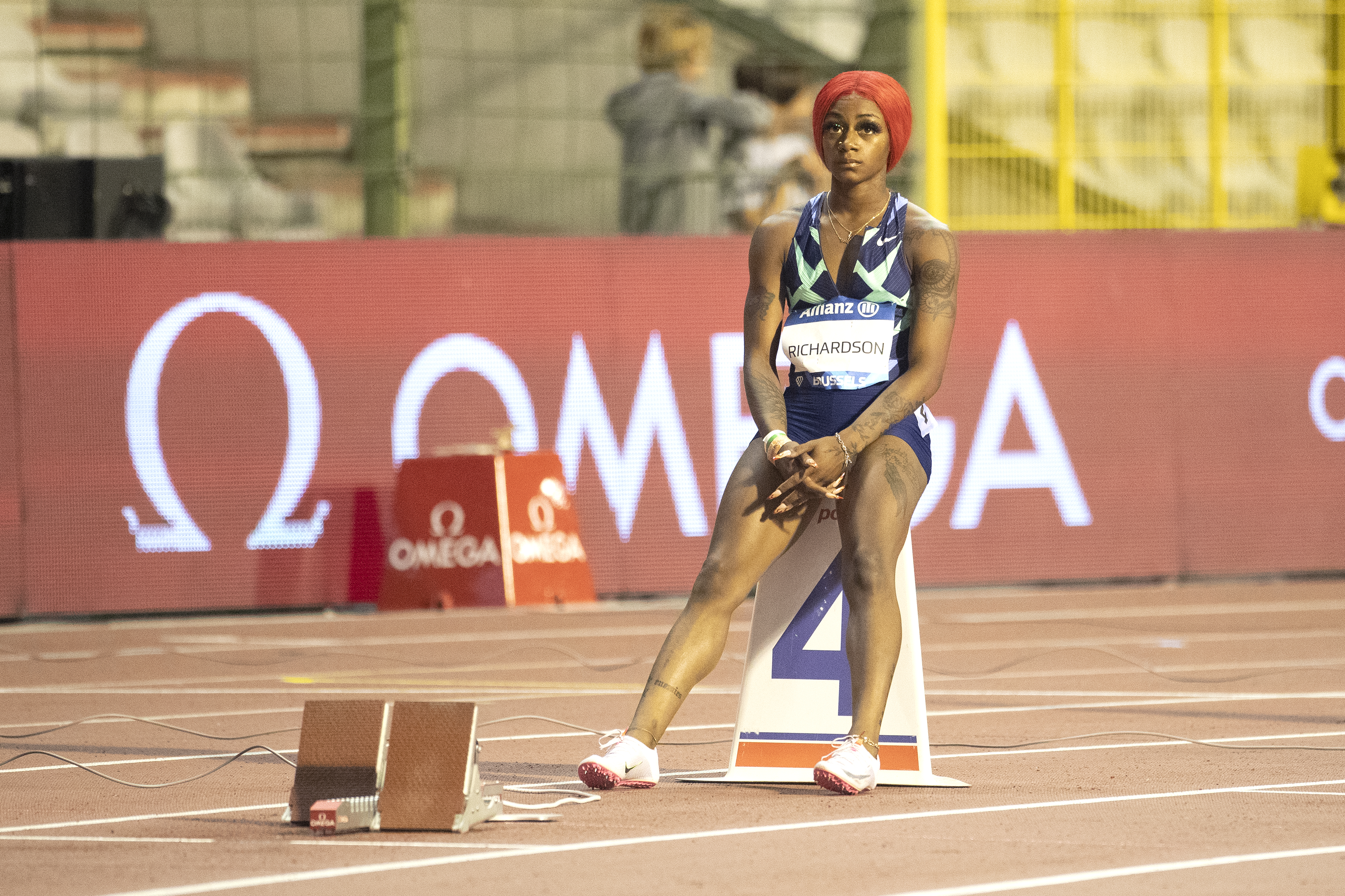 The 21-year-old, who had been seen as a top contender in the 100 meters, has said she used cannabis to help cope with the death of her mother.