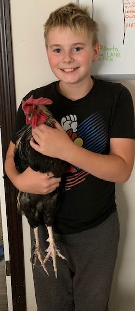 Having a rooster sleep in his bedroom has already taught her son how to get up at the crack of dawn.