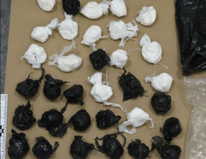 After the suspicious man was seen stashing the packages, a homeowner contacted police, who were able to determine that the bags contained a large amount of suspected cocaine.