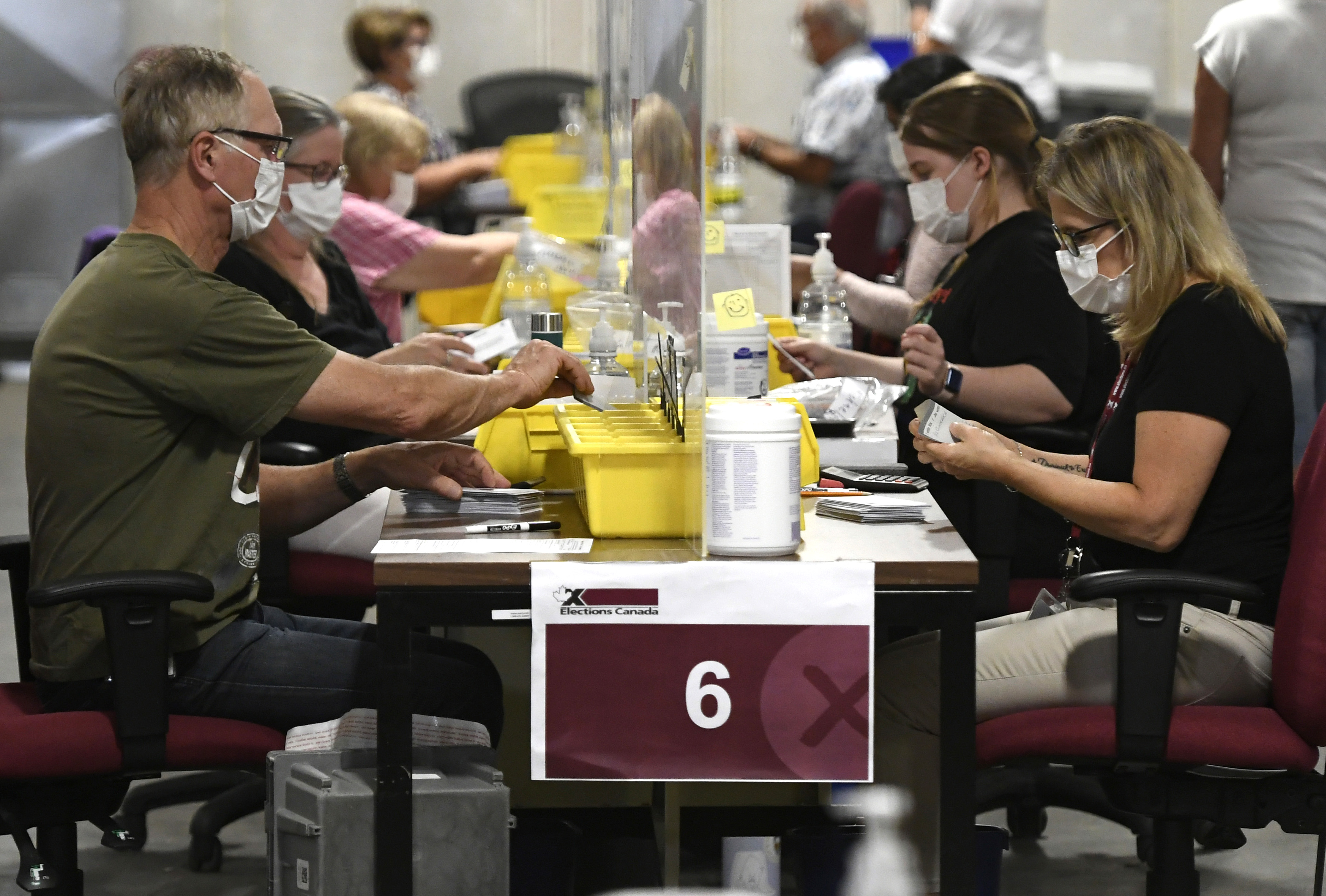 Elections Canada said Friday that 12 ridings have not started counting mail ballots.