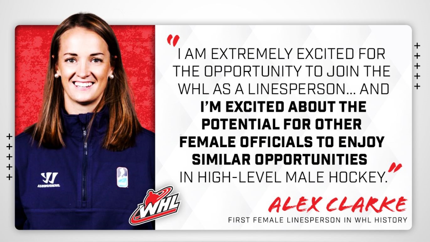 “On behalf of the WHL and all our member clubs, we wish to extend a warm welcome to Alex Clarke as she joins our WHL officiating program,” said WHL commissioner Ron Robison.