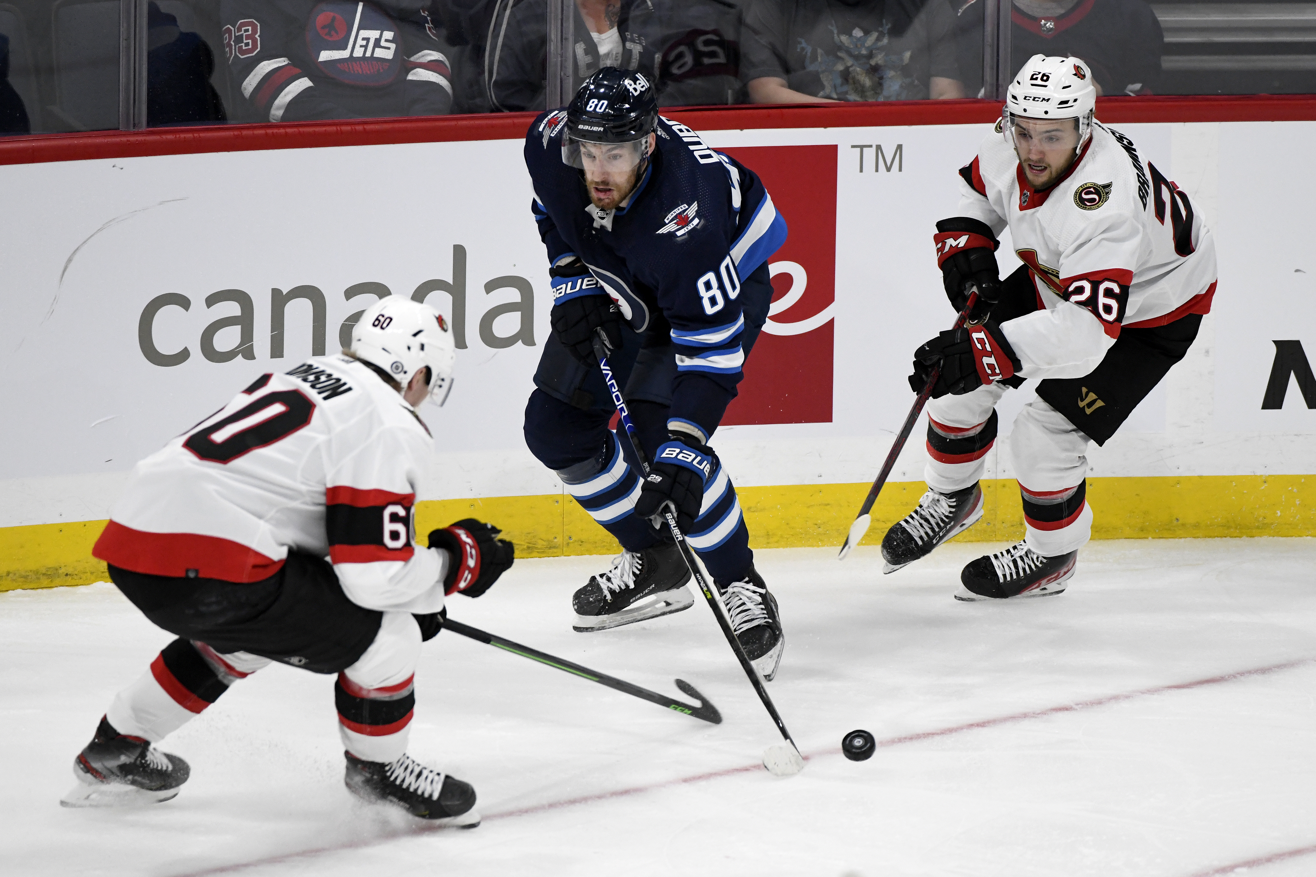 Ottawa Senators forward Ridly Greig has been suspended for a pre-season game and a regular-season game for cross-checking Winnipeg Jets forward Pierre-Luc Dubois.