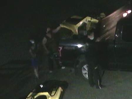 Police say the suspects — two males and a female — entered the parking lot by driving a black Ford 150 (with extended cab) through a locked security gate. They then stole an all-terrain vehicle, two personal watercraft, and the trailer for the watercraft.
