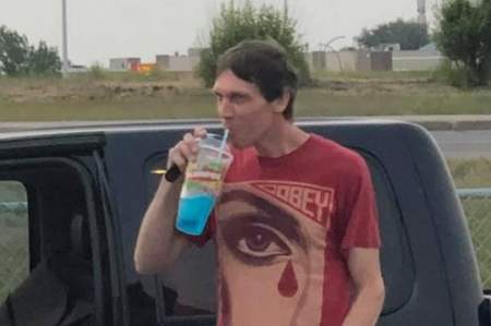 He is described as six-foot three, 150 pounds with short brown hair and blue eyes.