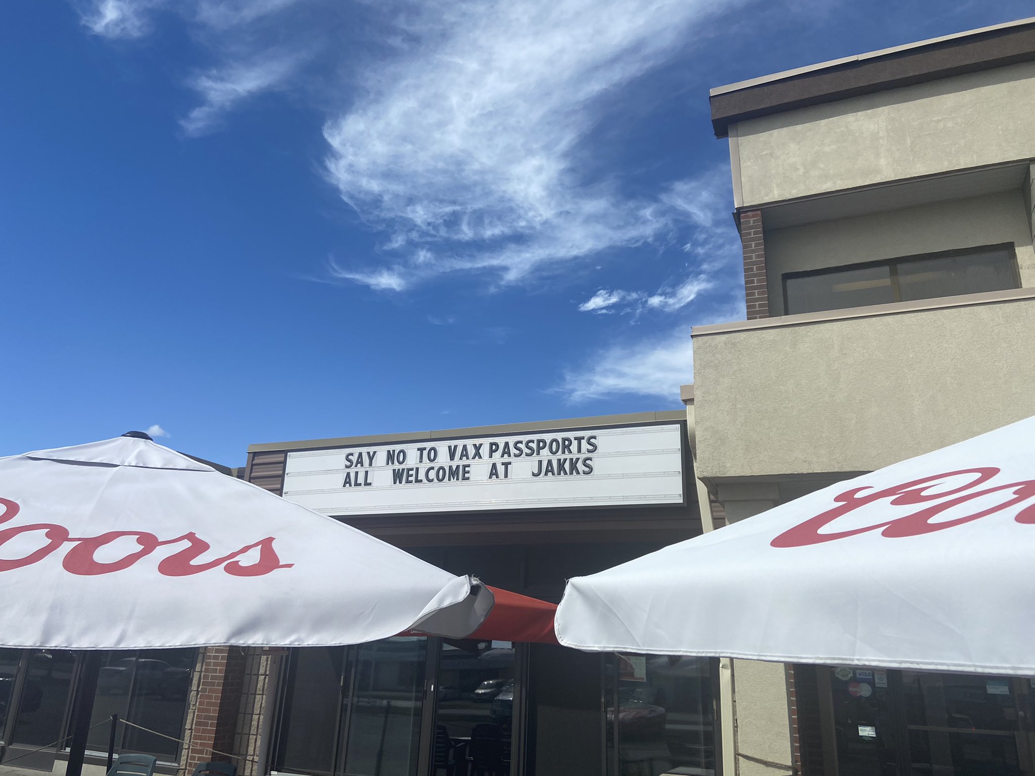 The restaurant was in the spotlight earlier this month when it displayed a message on its marquee reading “Say no to vaccine passports, all welcome at JAKKs.”