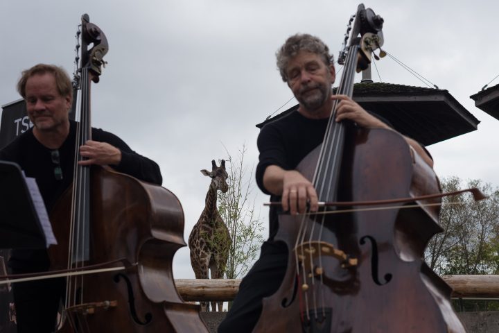 Double bassists Tim Dawson and Paul Rogers say one of the concert’s songs, which was written by Rogers’ son, was inspired by Masai giraffes at the zoo.