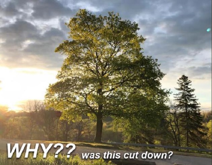 “Cricket tree also provided shelter for numerous animals and insects over the years, and at one point there had been a bee hive hanging there. Why was this done? Why did you take our tree away?”