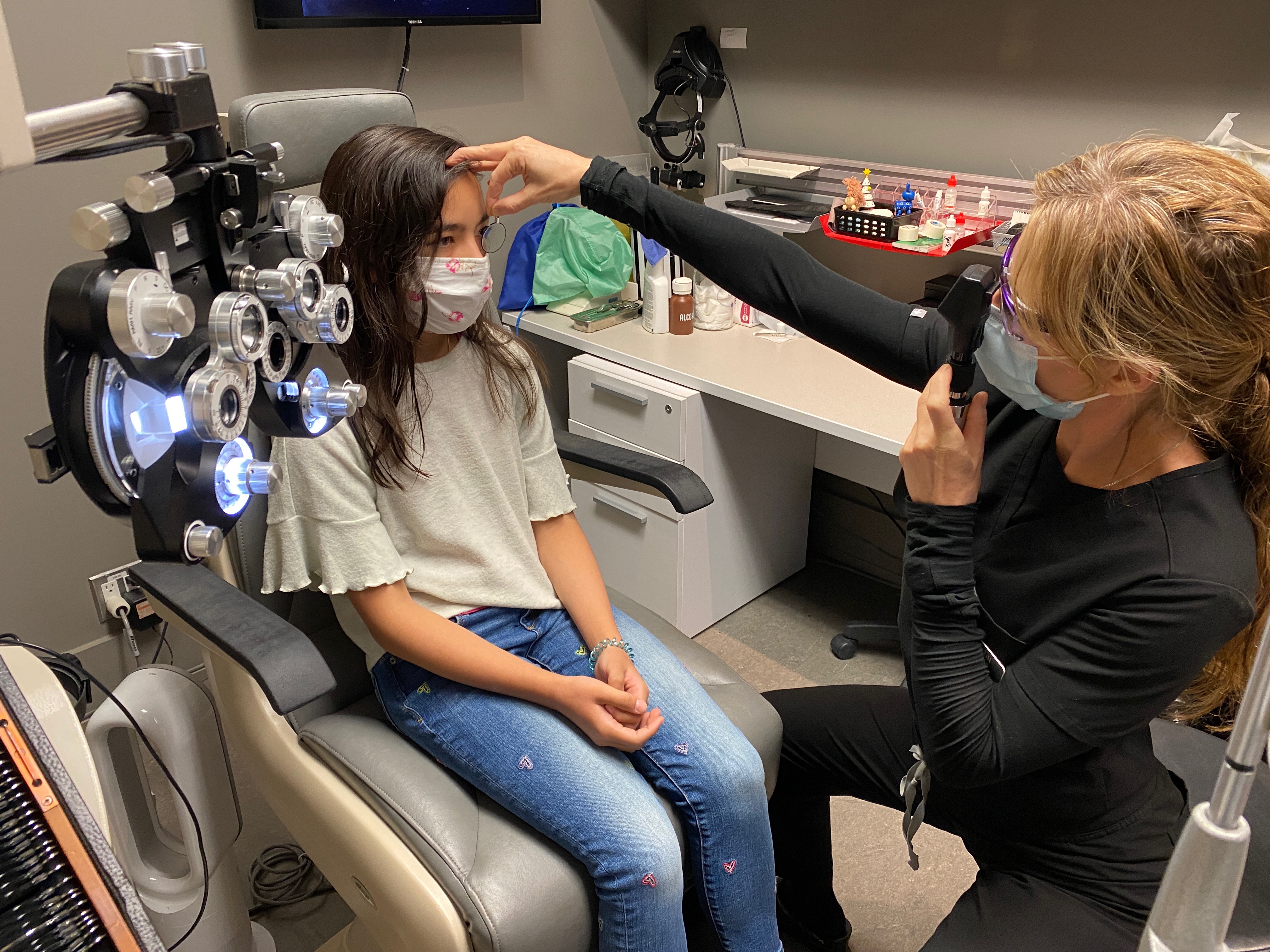 Olivia Mar’s appointment narrowed her issue to myopia — glasses and eye drops were prescribed to treat the progression.