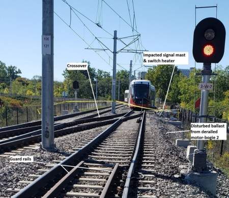 Canada’s transportation watchdog has published new photos and details about the latest derailment on Ottawa’s light-rail transit system, showing the damage sustained to Tremblay Station and the surrounding infrastructure.