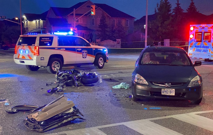 Just before 6 p.m. at the intersection of Westbrook Avenue and Cottrelle Boulevard, west of The Gore Road in Brampton, an update on the Peel Regional Police service’s Twitter account said there was a crash between a motorcycle and a car.