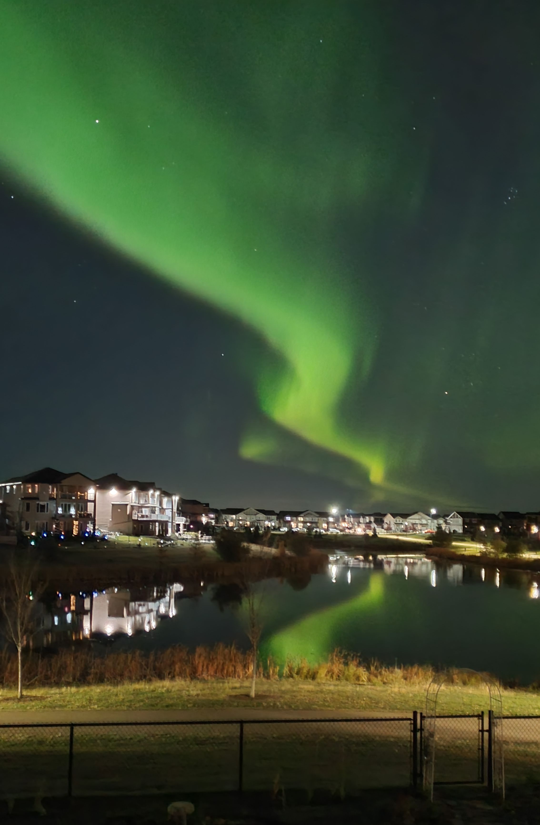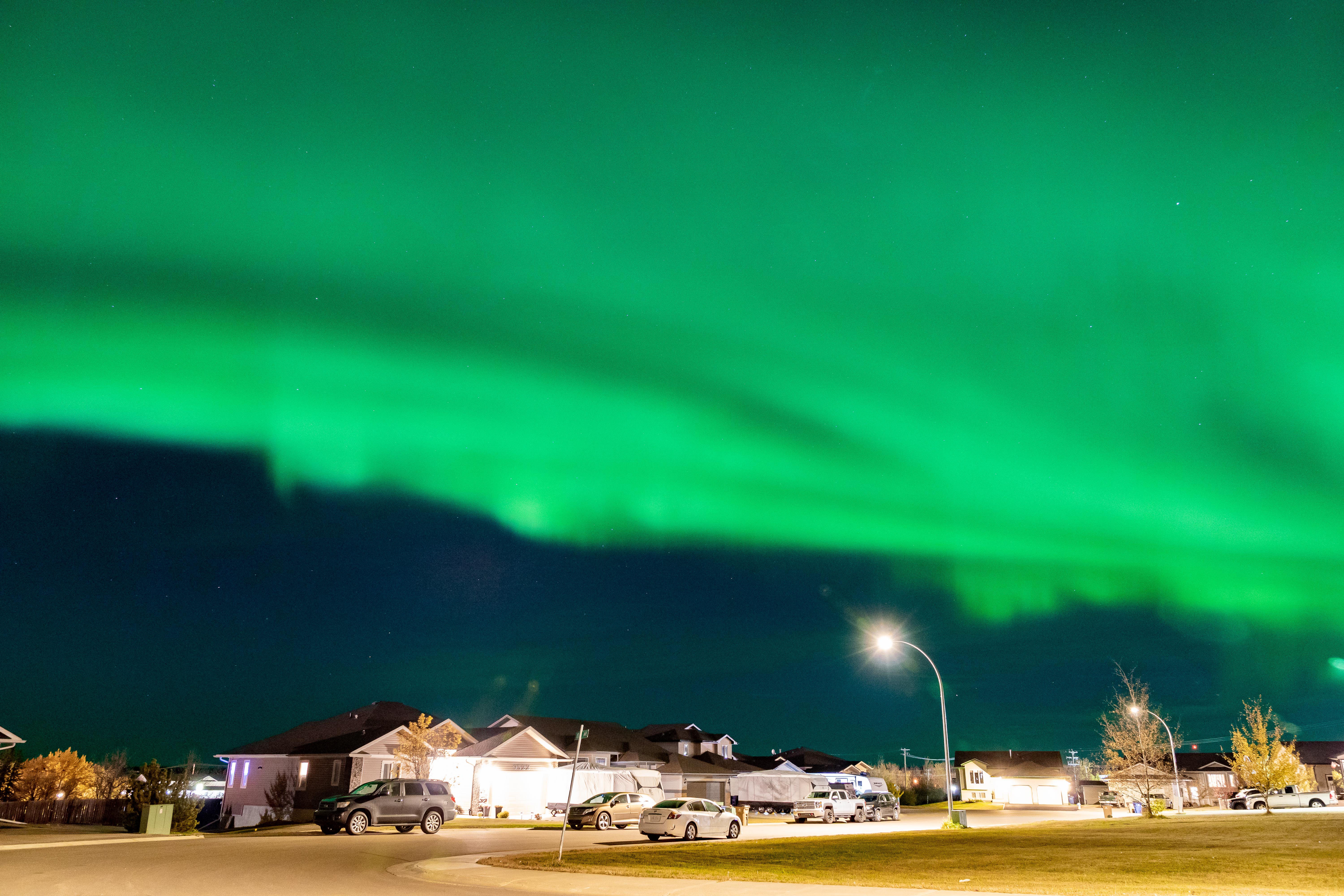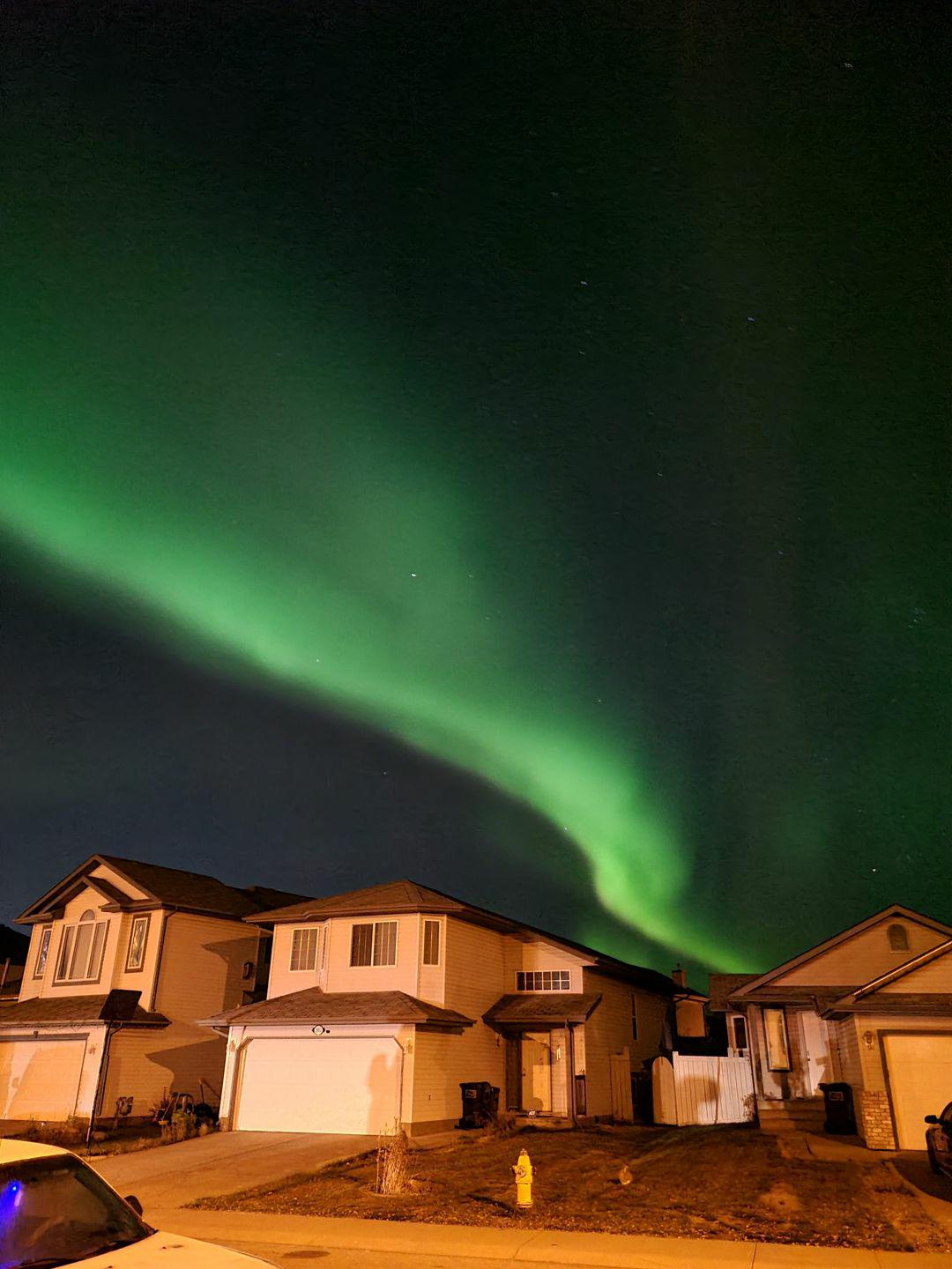 Normally, aurora watchers need to leave the bright lights of the city to properly take in the astrological show, but even at 5 a.m. Tuesday, it was vivid enough to be seen inside Edmonton.