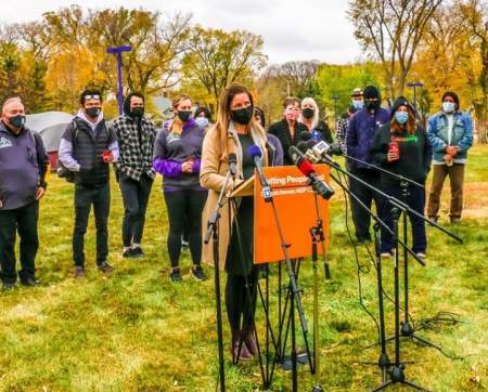 Standing near a group of tents pitched in Regina’s Pepsi Park east of downtown, Conway said she wrote a letter to Minister of Social Services Lori Carr to call on the provincial government to suspend the program and return to a direct payment model for housing and utilities.