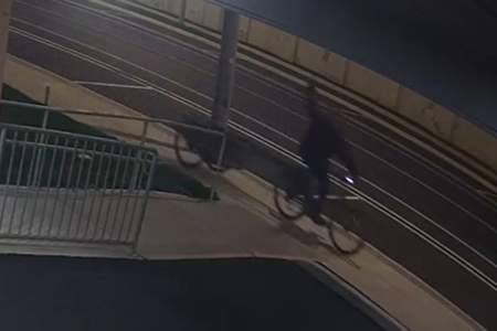 On both nights, a person of interest is seen rising a bicycle, according to police.