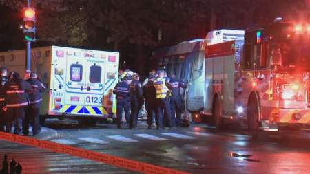 At around 11 p.m. Monday, the pedestrian became pinned under the bus as it was making a left-hand turn off of Castelnau Street onto Chateaubriand Avenue, according to police.