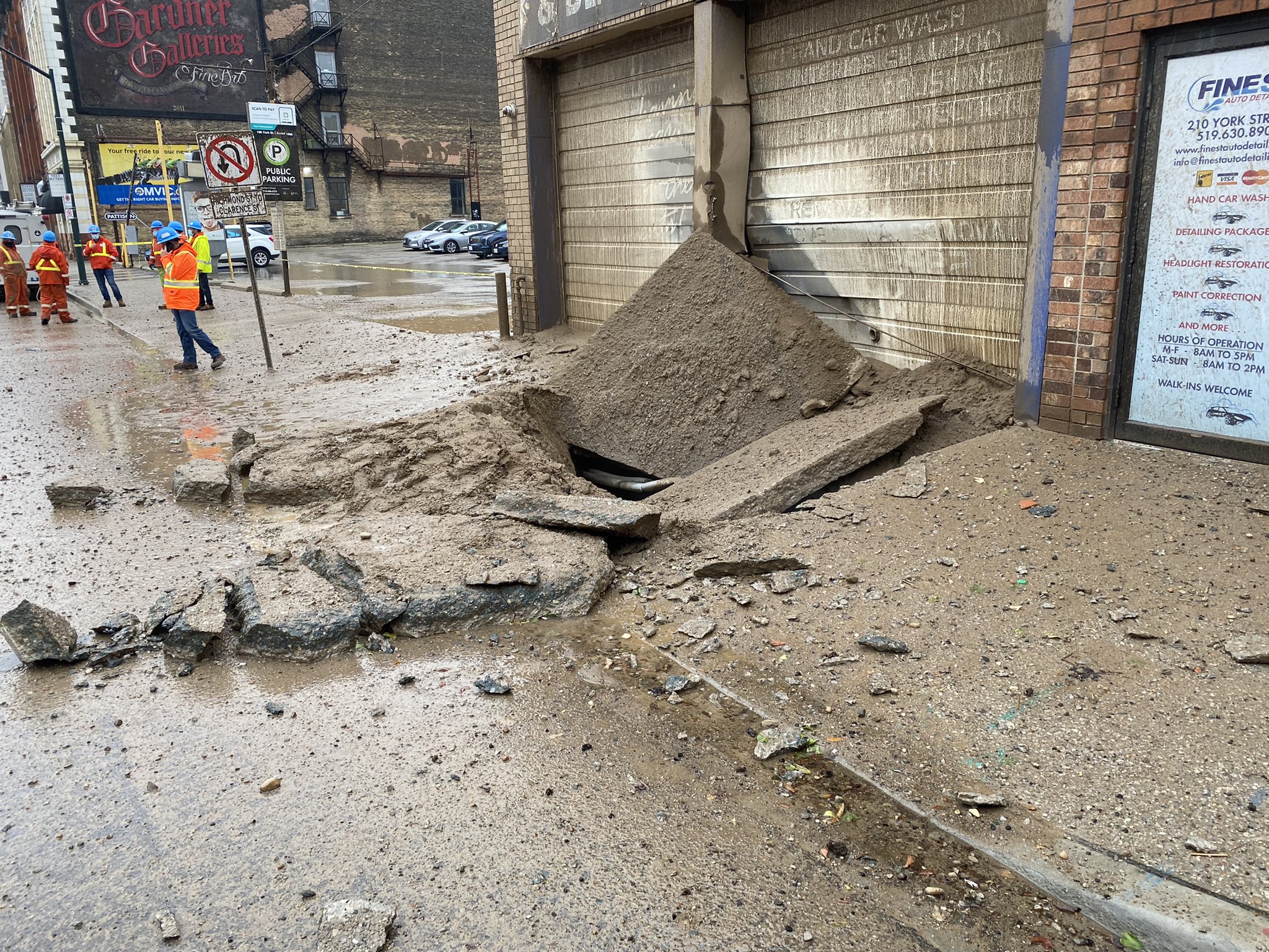 Emergency crews arrived at the intersection of York and Clarence streets around 2 p.m. and were met with the sight of a large plume of steam emerging from the ground.