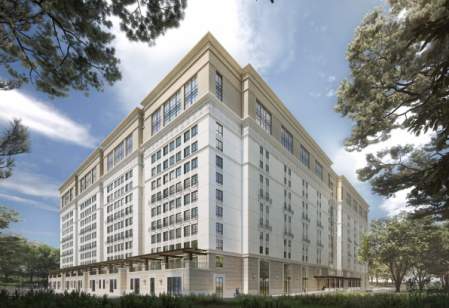 Although the project renderings show many windows on the outside of the building, each of the nine identical residential floors is divided into eight “houses,” with each house further divided into eight eight-person suites. Only the bedrooms that fall at the end of each row — about six per cent of all rooms — feature a window.
