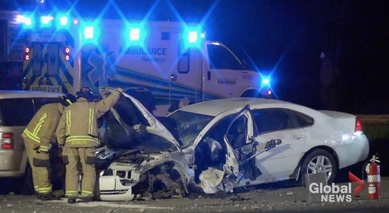Emergency crews were called to the scene just east of the Lansdowne Street bridge around 10:30 p.m. where they found a car that had struck and knocked down a hydro pole and had also collided with a vehicle in the parking lot of Currie Tire.