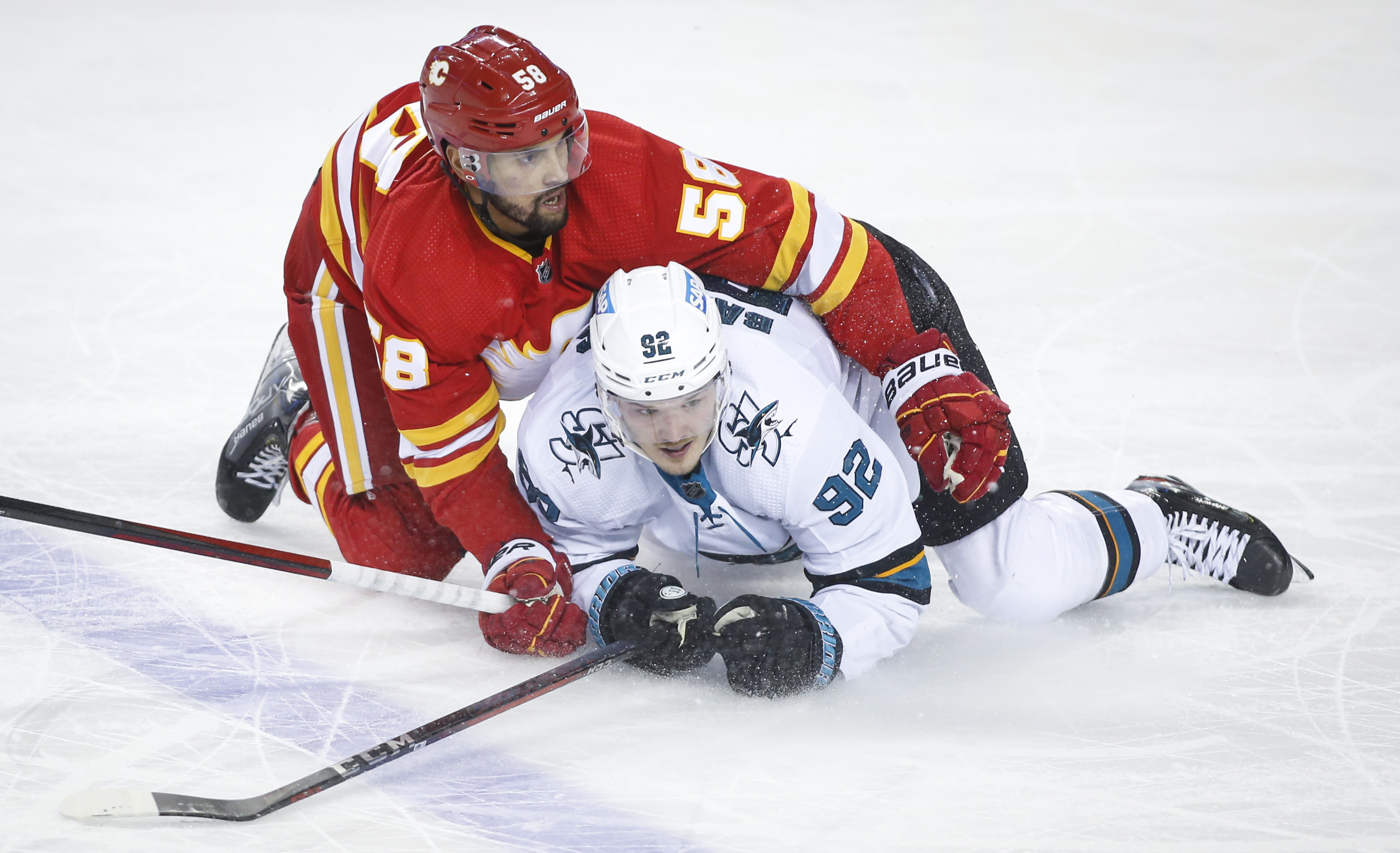 The Flames didn’t score on three power-play chances, while the Sharks went 0-for-2.