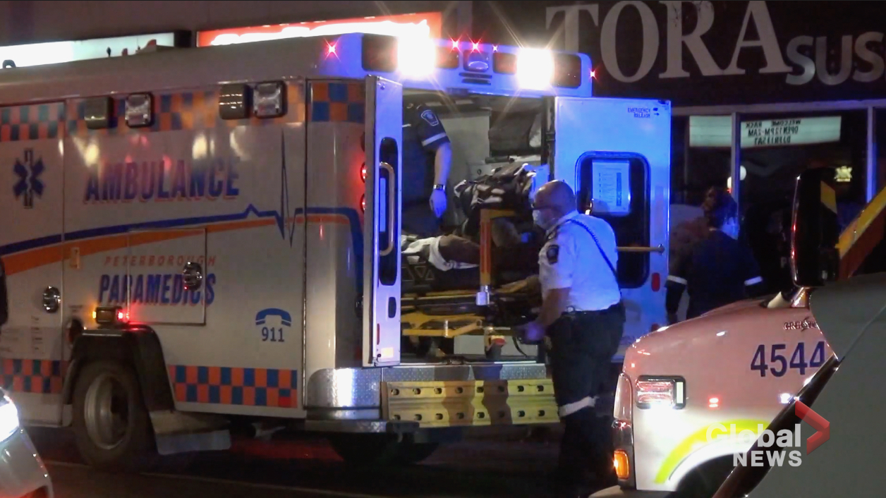 Police say they located a 35-year-old injured victim who was first taken to Peterborough Regional Health Centre by paramedics and later transferred to a Toronto-area hospital.