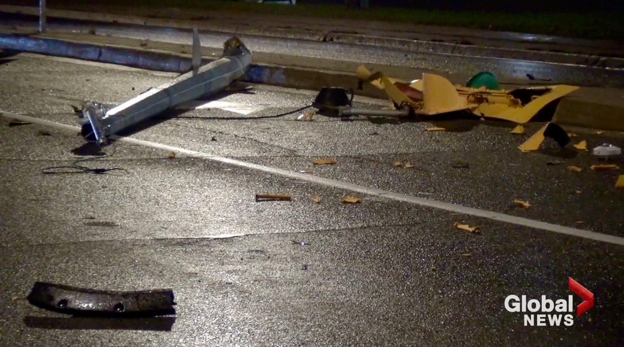 They found a damaged pickup truck, a downed traffic light and a damaged hydro pole.